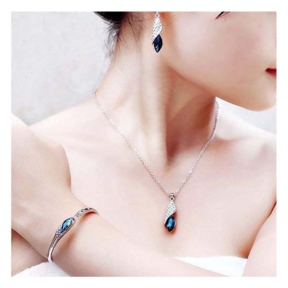 Valentine Gift By Shining Diva Italian Designer Non Precious Metal Jewellery Set for Women (Blue) (r