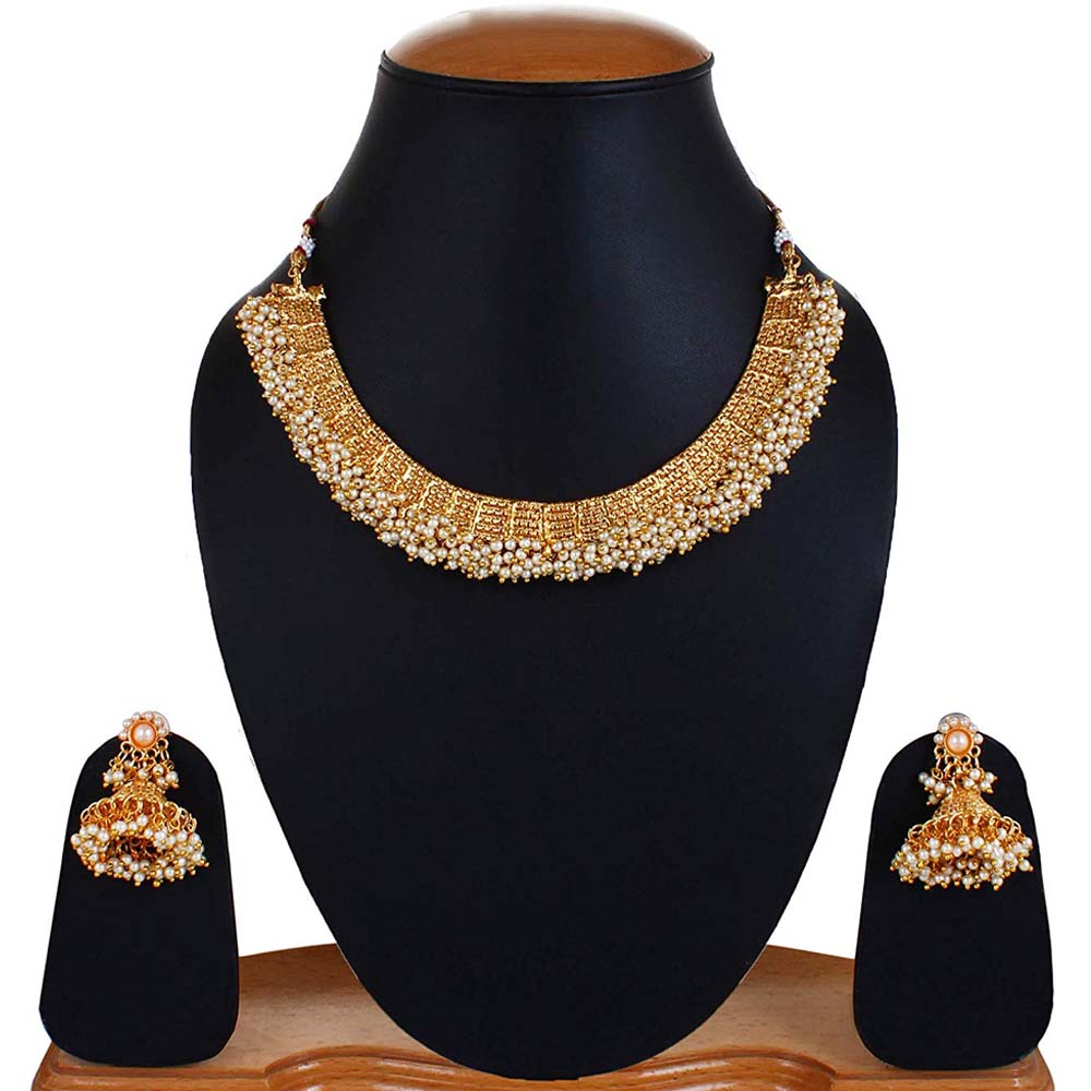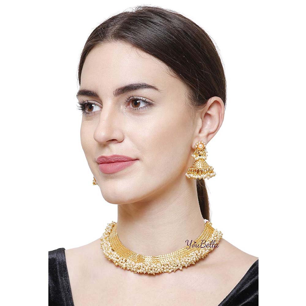 YouBella Jewellery Exclusive Gold Plated Pearl Studded Traditional Temple Necklace Set for WomenJewe